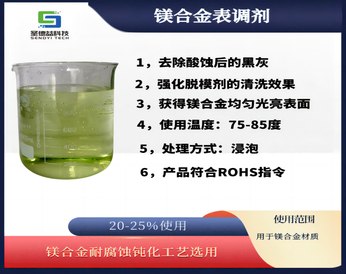 鎂合金材料具有質(zhì)輕、硬度高的特性,在機械行業(yè)中具有獨特的應(yīng)用效果,但是鎂合金的耐腐蝕性比較差,因此必須進(jìn)行表面處理;本公司擁有的鎂合金表從清洗、蝕刻、表調(diào)、鈍化、封閉全面配套的藥劑,處理鎂合金不僅耐腐蝕性大大提高,而且具有提高油漆附著力。本藥劑廣泛使用在鎂合金的航天、汽車、自行車、電子產(chǎn)品的配件中。