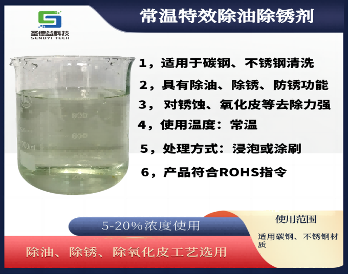 2,堿性除銹劑,適用于鑄鐵、碳鋼、不銹鋼等金屬除銹劑,PH值13,具有去除一般銹蝕和短期防銹和除油的功能,特別是不銹鋼清洗后光亮如新,無(wú)味無(wú)臭,屬于生物降解型環(huán)保清洗劑 。