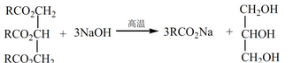 脂肪酸烴基,含l7~22個碳原子。油脂在熱堿液中發(fā)生的化學(xué)反應(yīng)為: